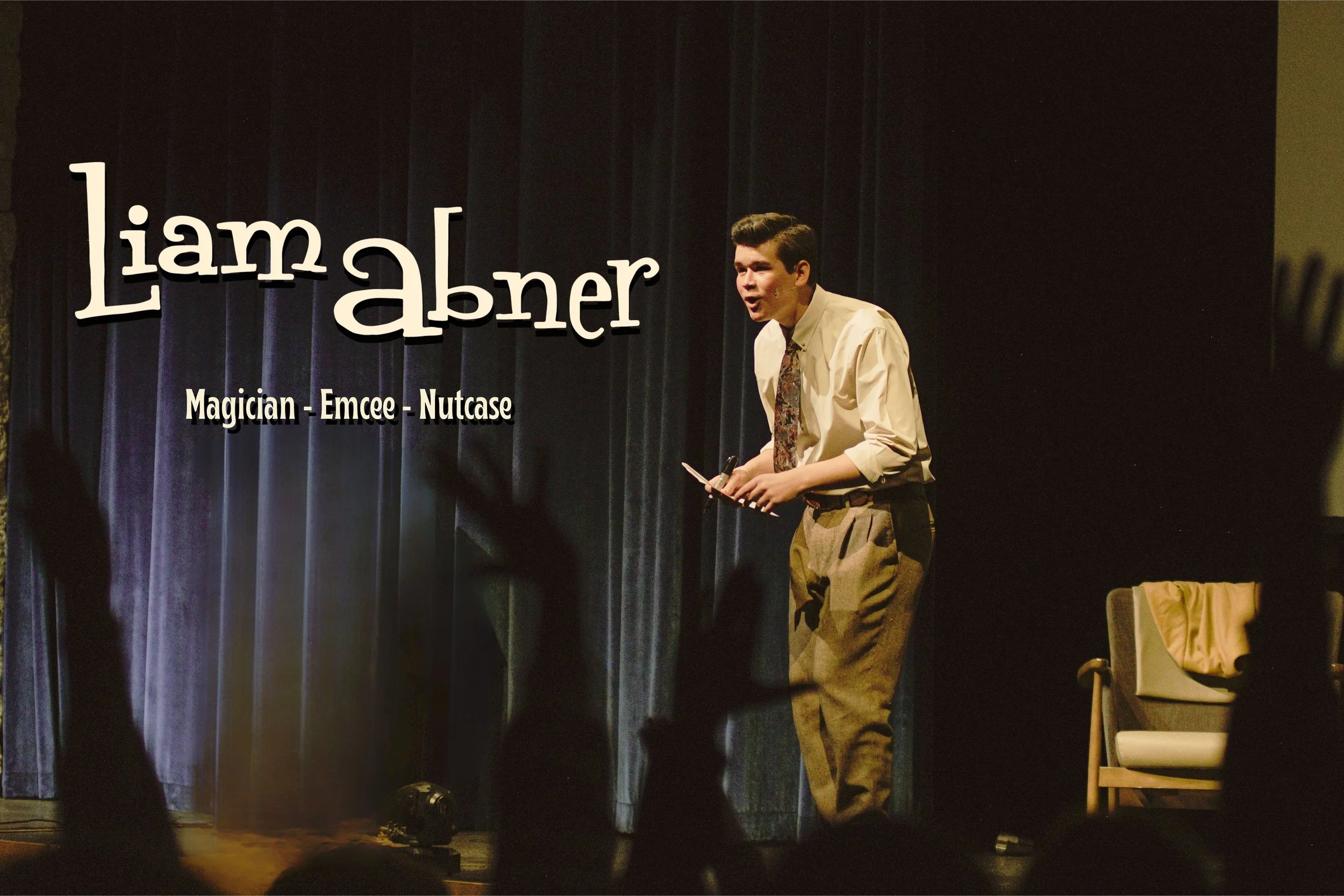 Liam Abner is a Magician & Emcee from Denver, Colorado! The art of entertainment has been coursing through his veins since he was young. From putting on talent shows in his own backyard, to appearing on corporate stages accross the country. Liam has had applause, laughter, and everything “Magic” ringing in his ears his whole life. Aside from magic, he plays the Tuba, Guitar, and LOVES everything creative! Plus, he’s a self proclaimed “MASTER at parallel parking.”